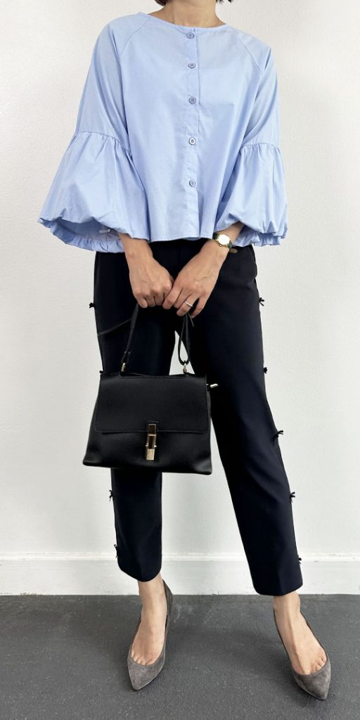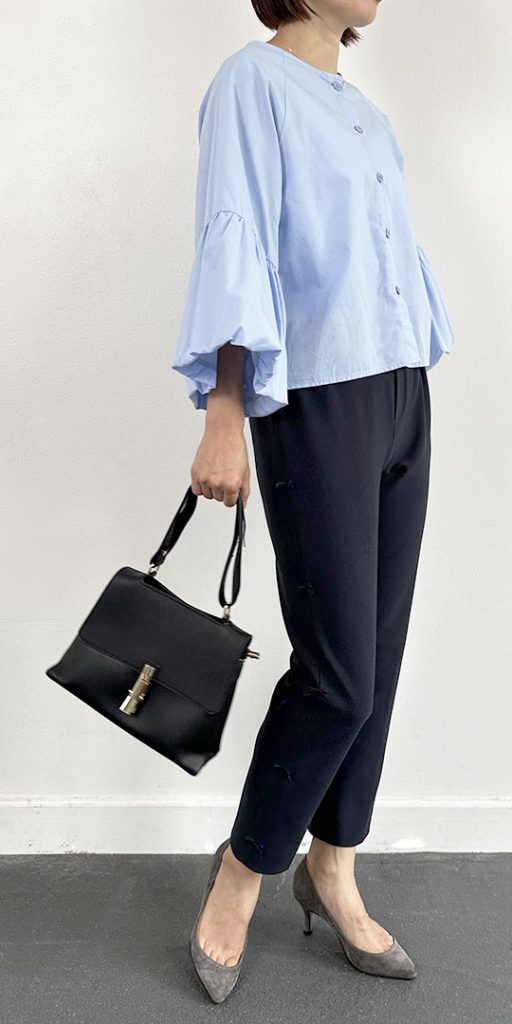 華奢見え効果抜群の、パフスリニットはお仕事スタイルにもぴったりのアイテムです。