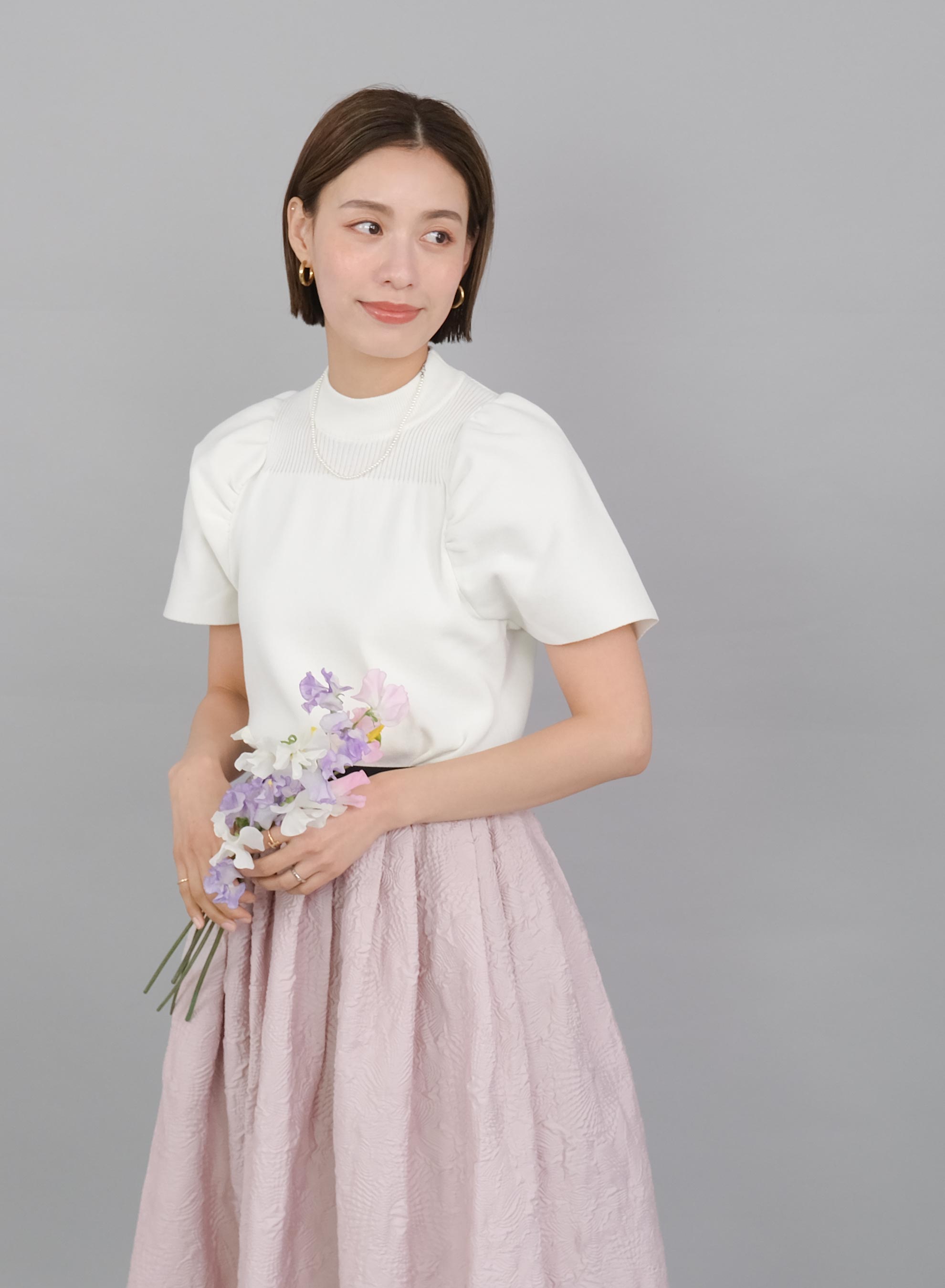 ふんわりとしたパフスリーブが、女性らしい印象のニットプルオーバー。オフィスにも、お出かけにも使える、着回し力抜群のアイテムです。神戸・山の手スカートと合わせれば、きちんと感のあるスタイルに。華やかなお出かけスタイルにもおすすめ。