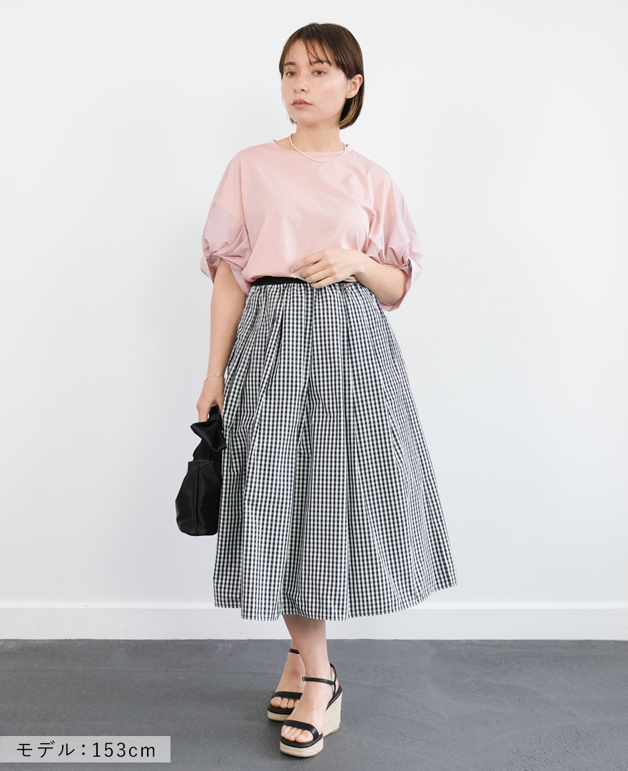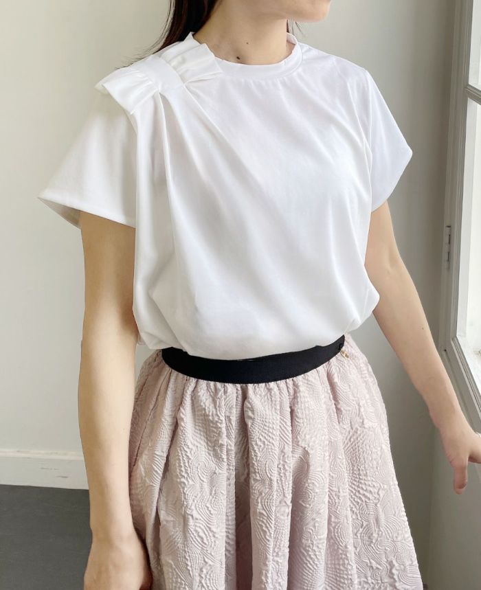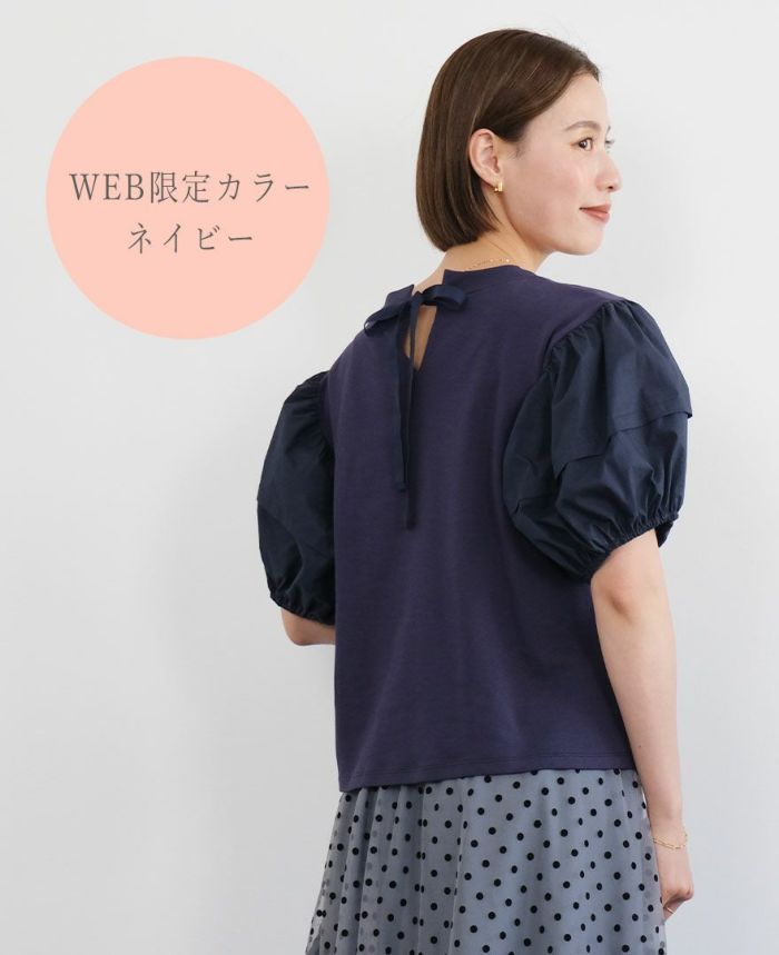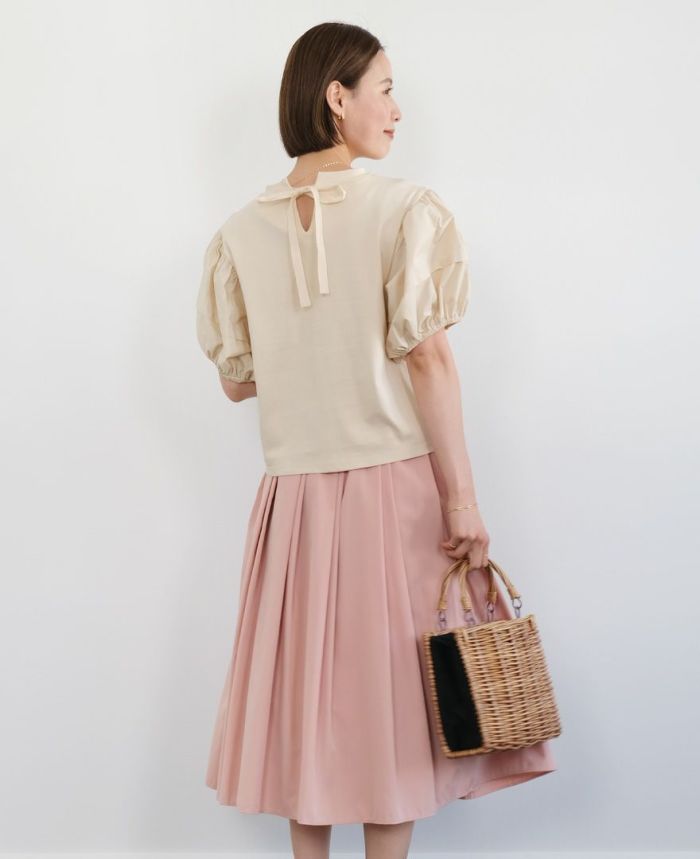 おすすめポイント:全方向抜かりなく。背中のリボンで甘さもプラス。動きやすいバルーン袖Tはショッピングにピッタリ!両手があくように斜め掛けバッグを選ぶと更に快適に過ごせます。