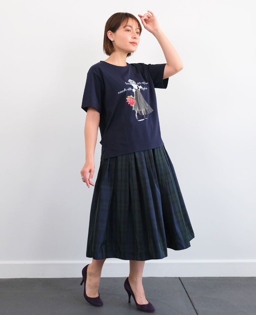 バレエシューズTシャツ(ブラック)×神戸・山の手スカート タータン