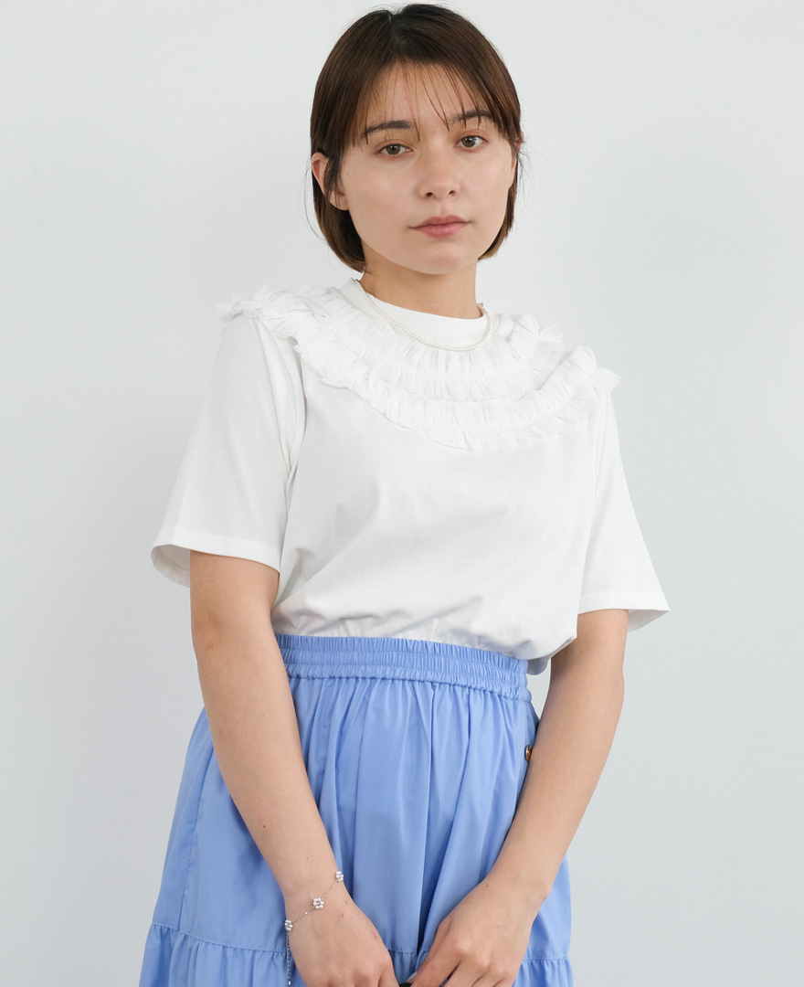 ⑦【大人可愛い】デコルテフリルチュールブラウス