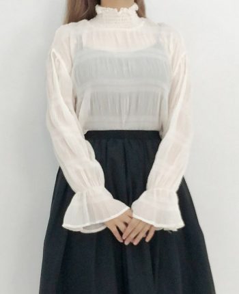 襟、袖口、裾はフリルになっていてちょっぴり甘さもプラスしてくれます。