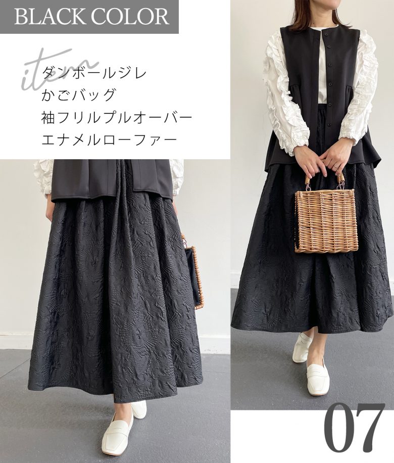 重くなりがちなブラックカラーですが、涼し気な素材感なので春夏でも重たくならずモノトーンコーデも楽しめます。