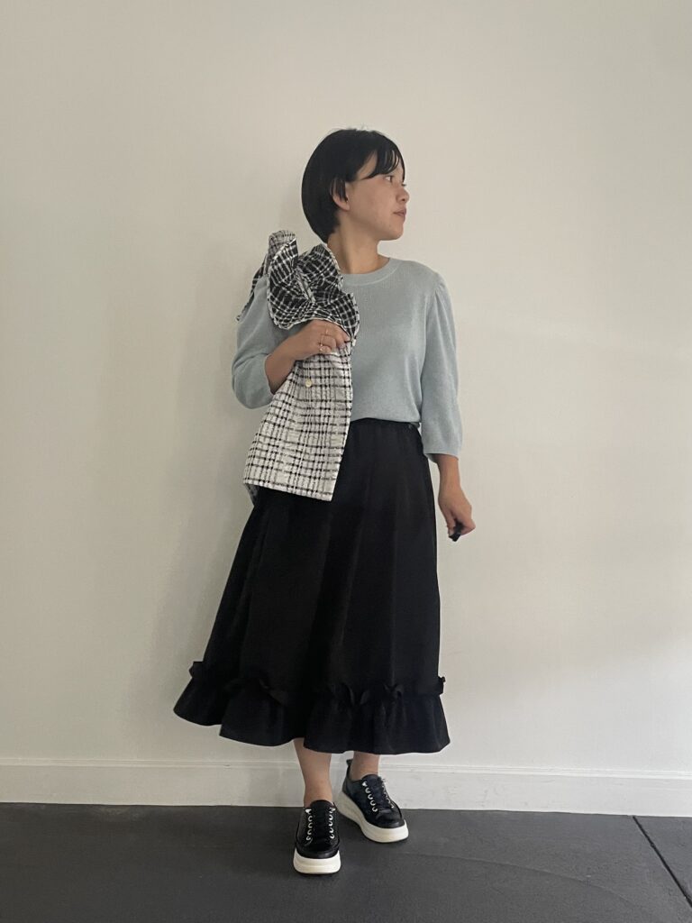 コーデのアクセントにフリルバッグを取り入れるだけで、メリハリのあるスタイリングになります♪