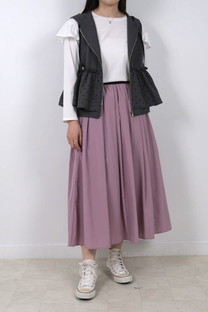 合わせるアイテム次第で、カジュアルからフォーマルまで幅広く活躍するフレアスカートですが、