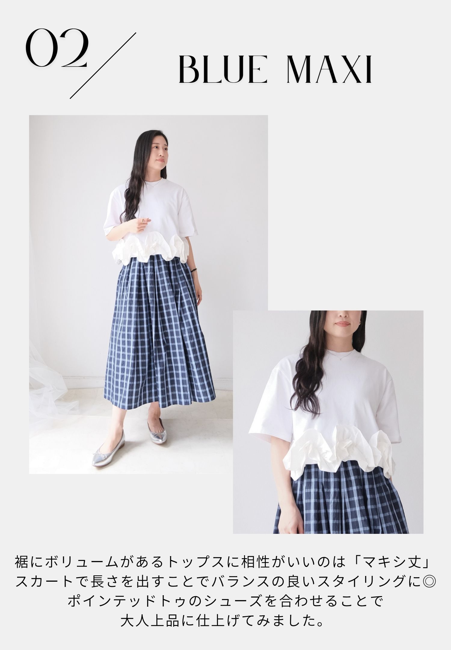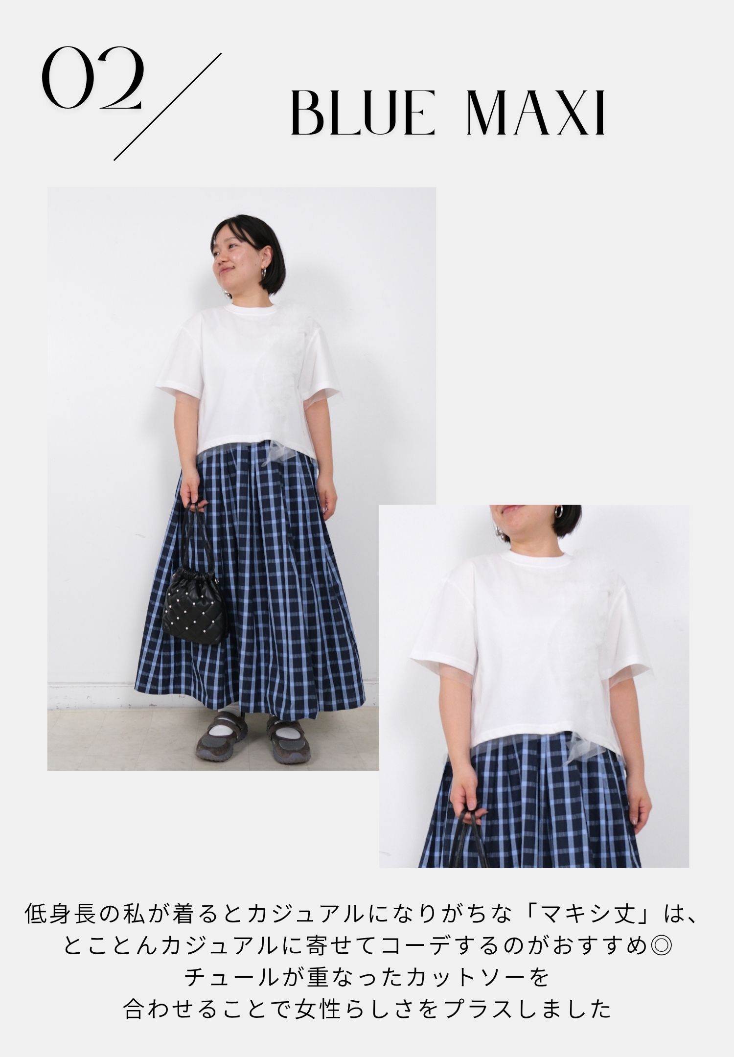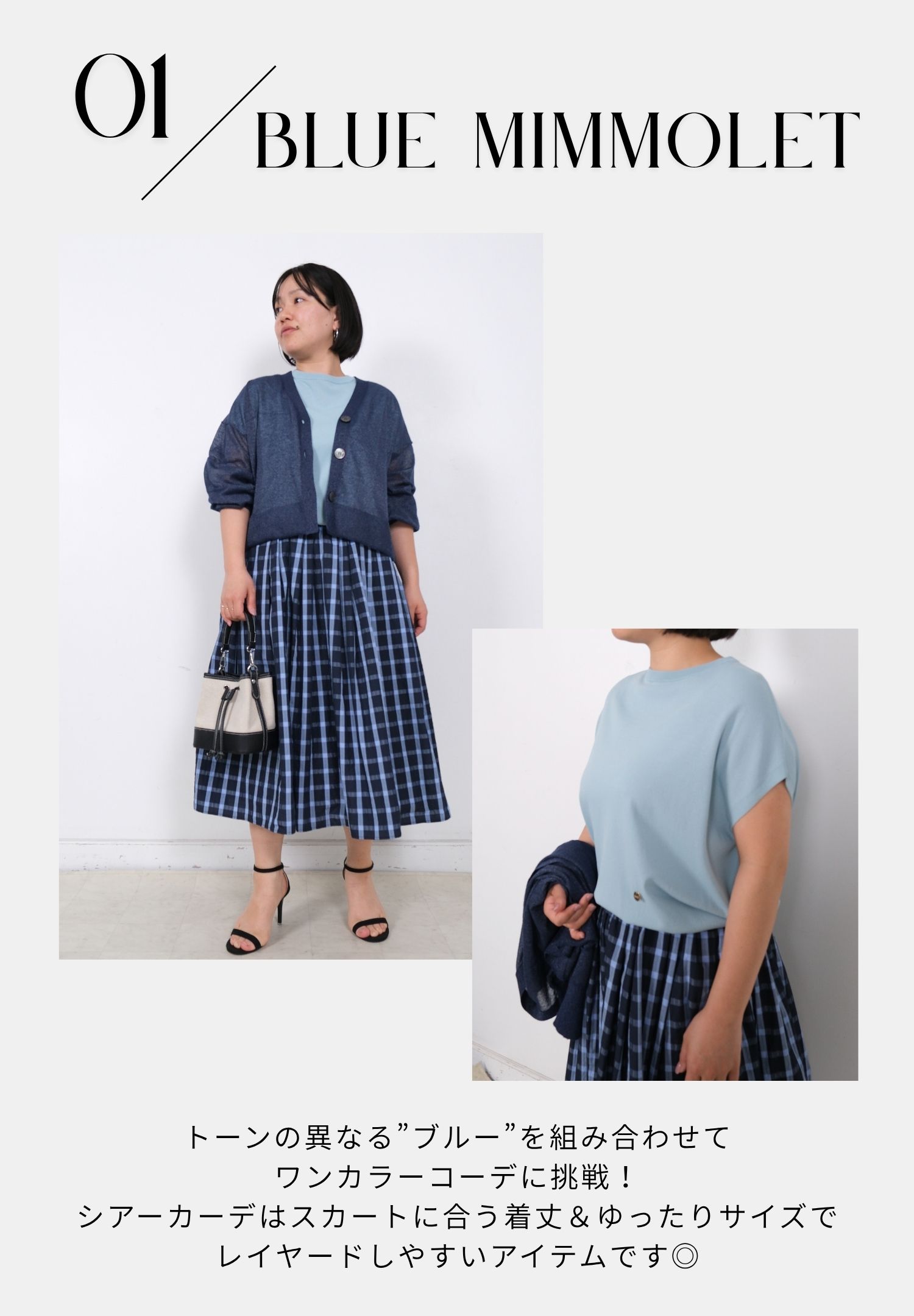 サマーチェックスカートは「ブルー」をチョイス。