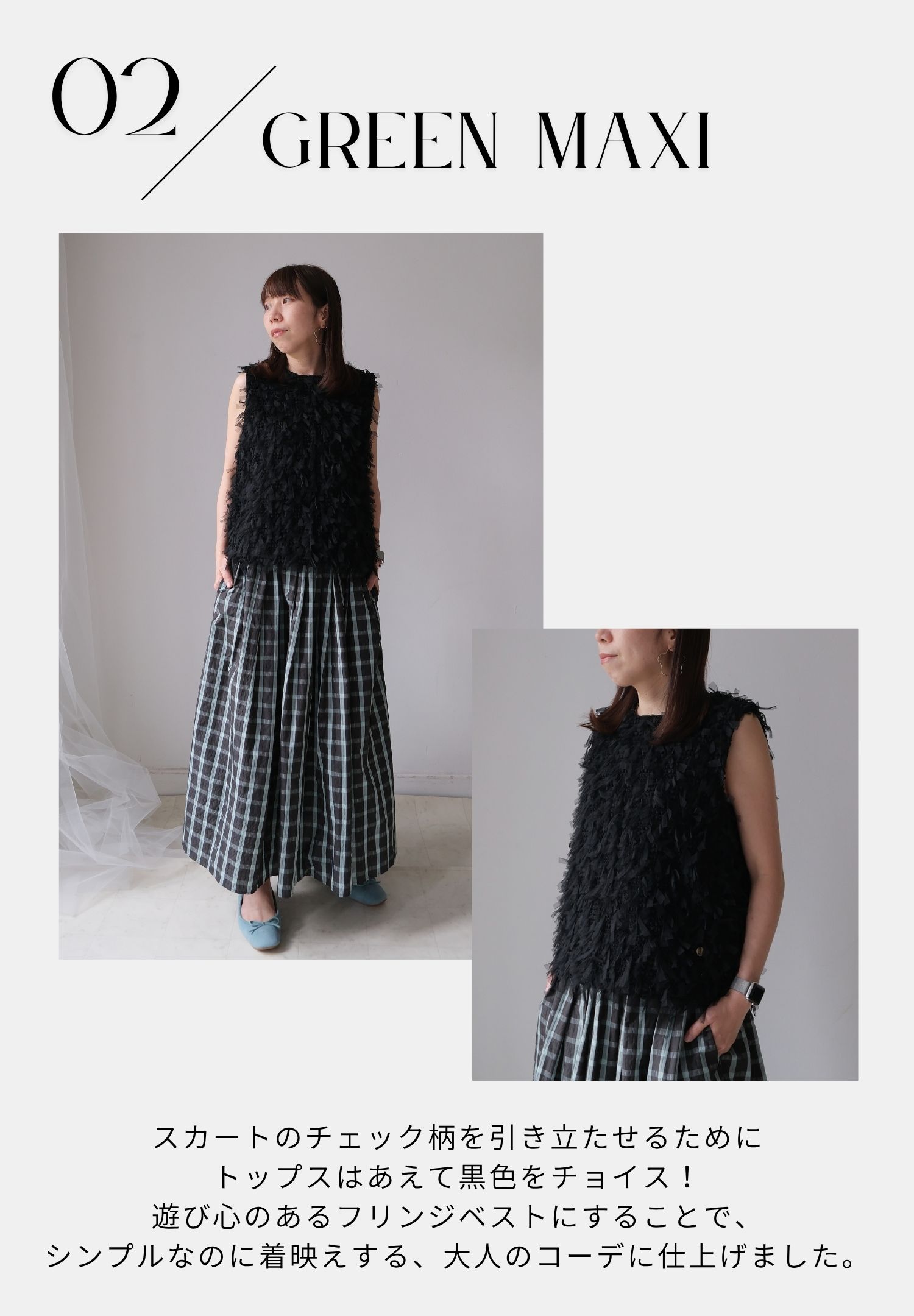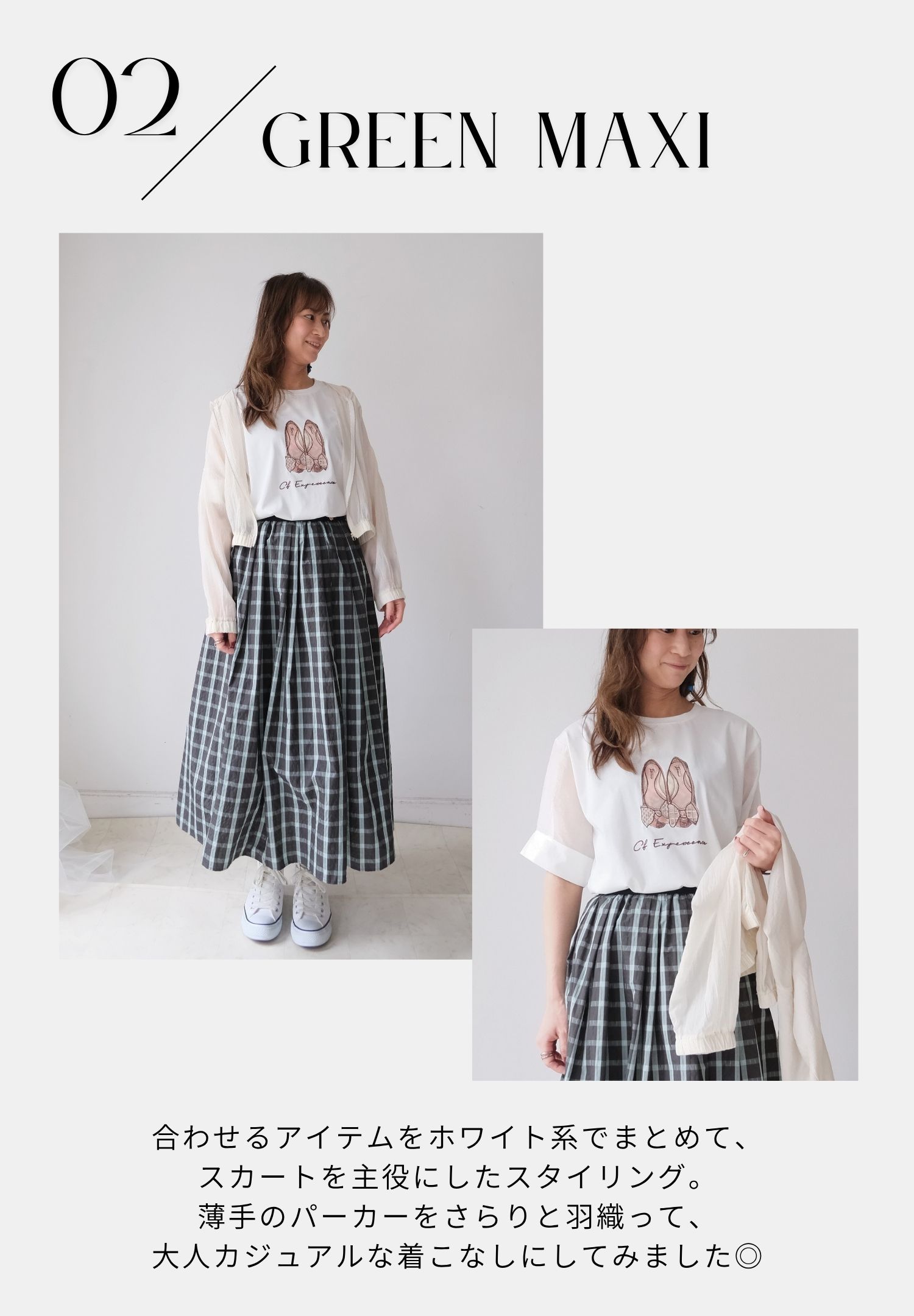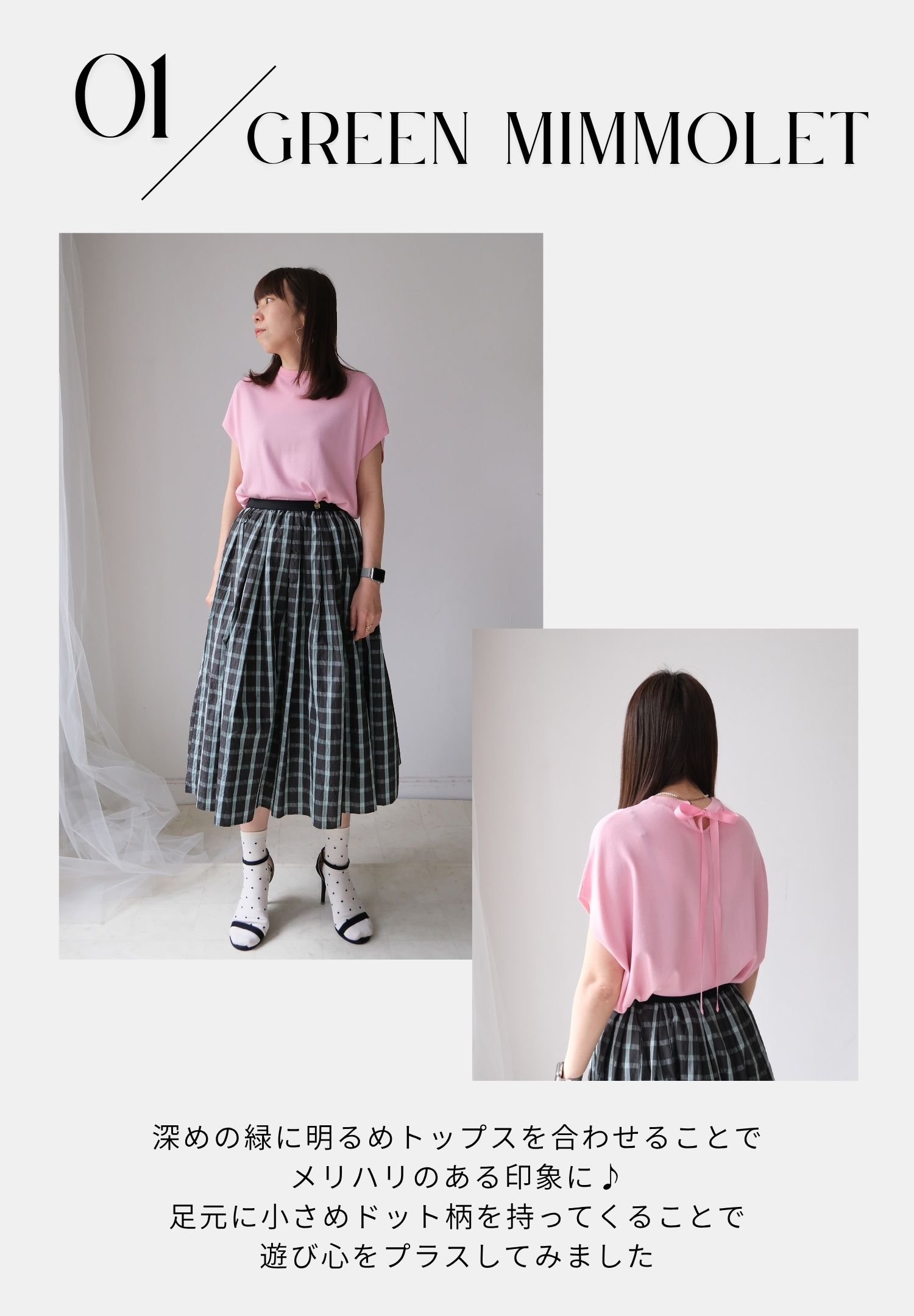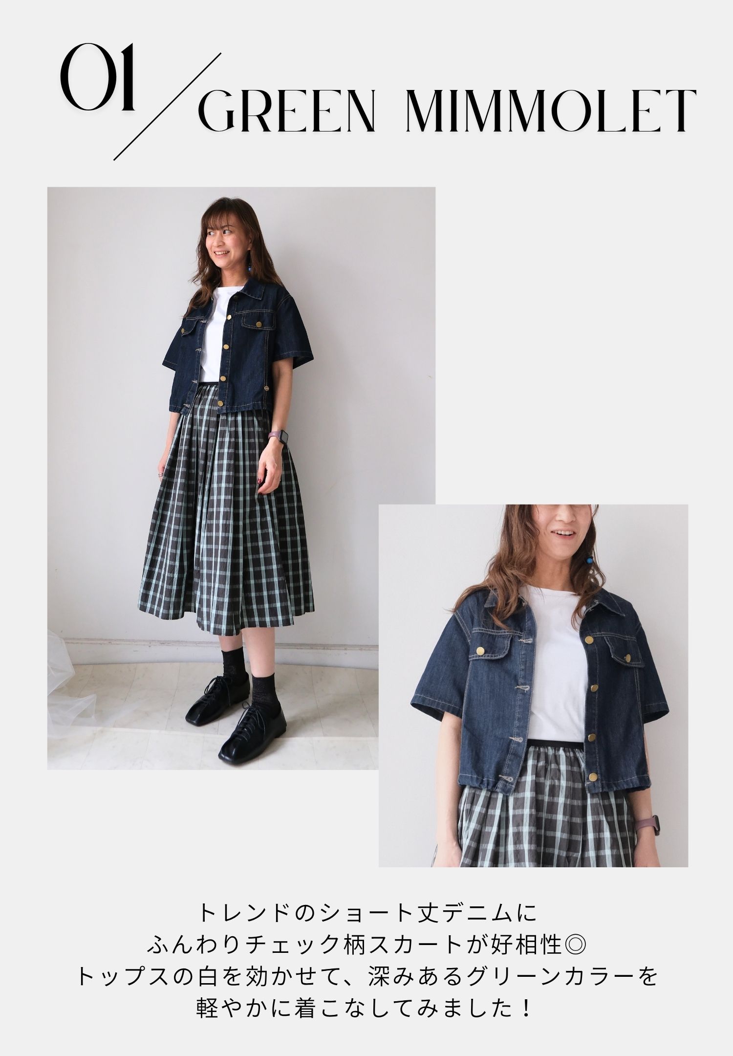 サマーチェックスカートは「グリーン」をチョイス。