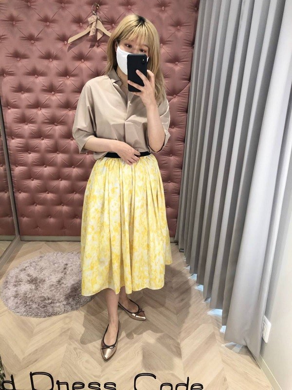 こちらは同じブラウスにイエローのドットタイトスカートをスタイリング。