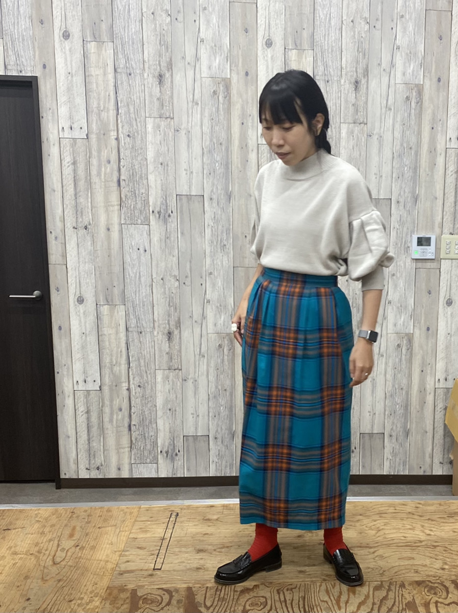 SKIRT右:【50%OFF】チェックIラインスカート ¥7,700(税込)