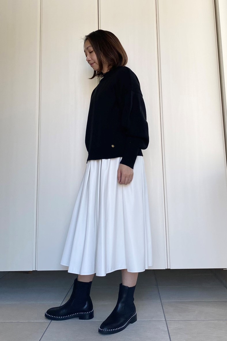フェイクレザースカートのホワイトと合わせたぱっきり濃淡コーデがお気に入り♪