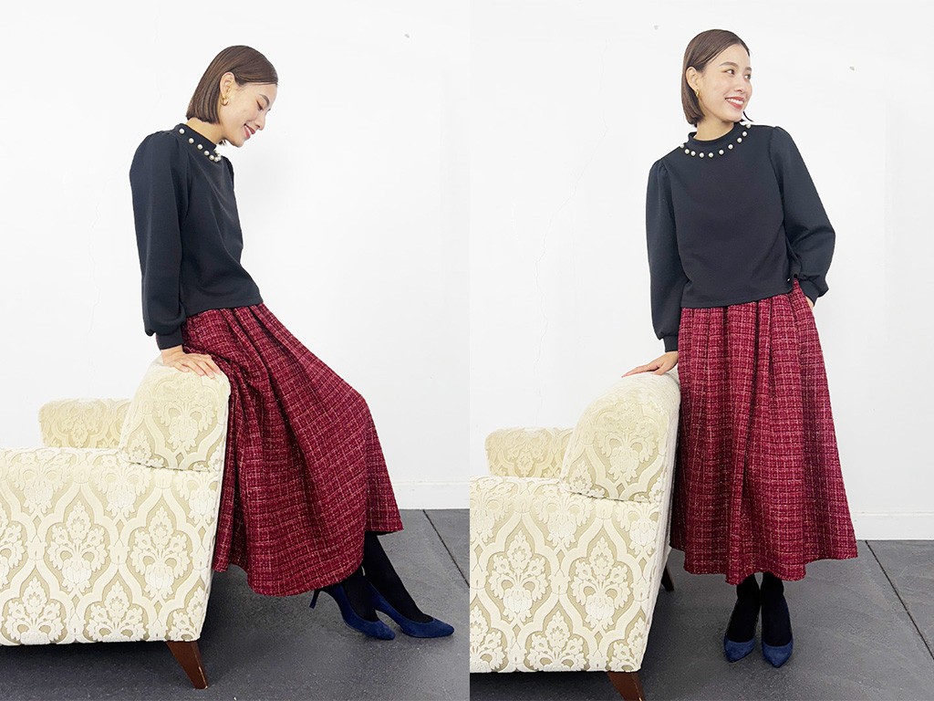 年末年始の高揚感をイメージしたような華やかな印象のツイードデザインスカート。
