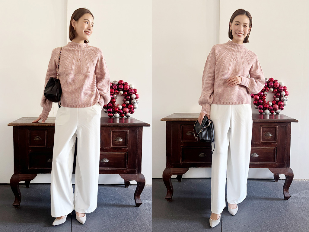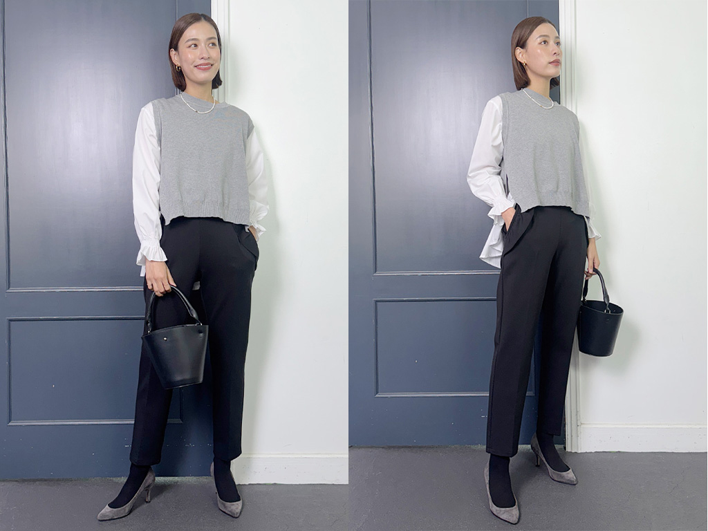 トップスの色をブラックに変更し、大人のエレガントな雰囲気をより一層強めました。