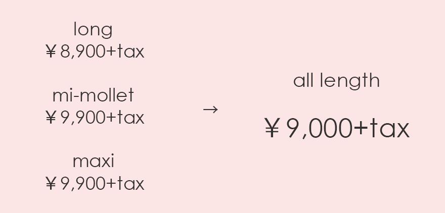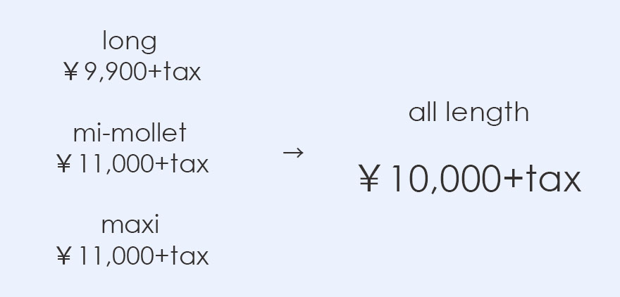 定番のスカートのロング・ミモレ・マキシ丈がそれぞれ同じ金額に。