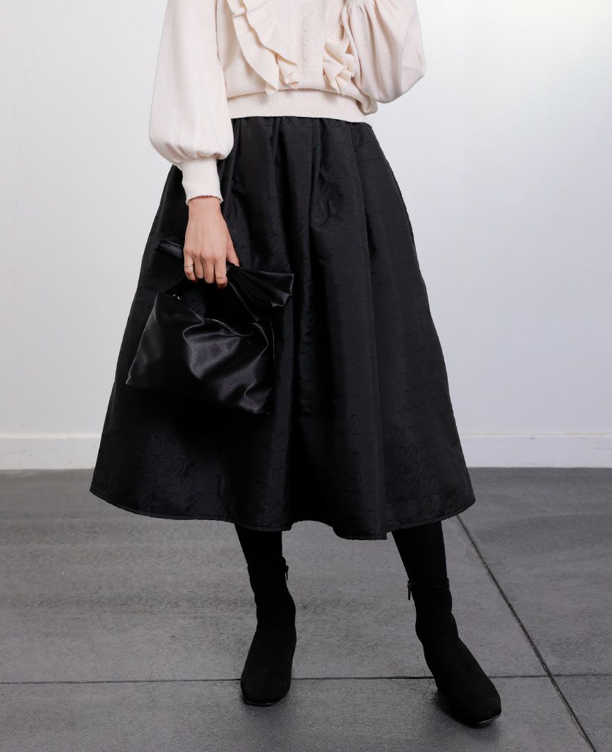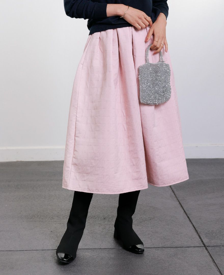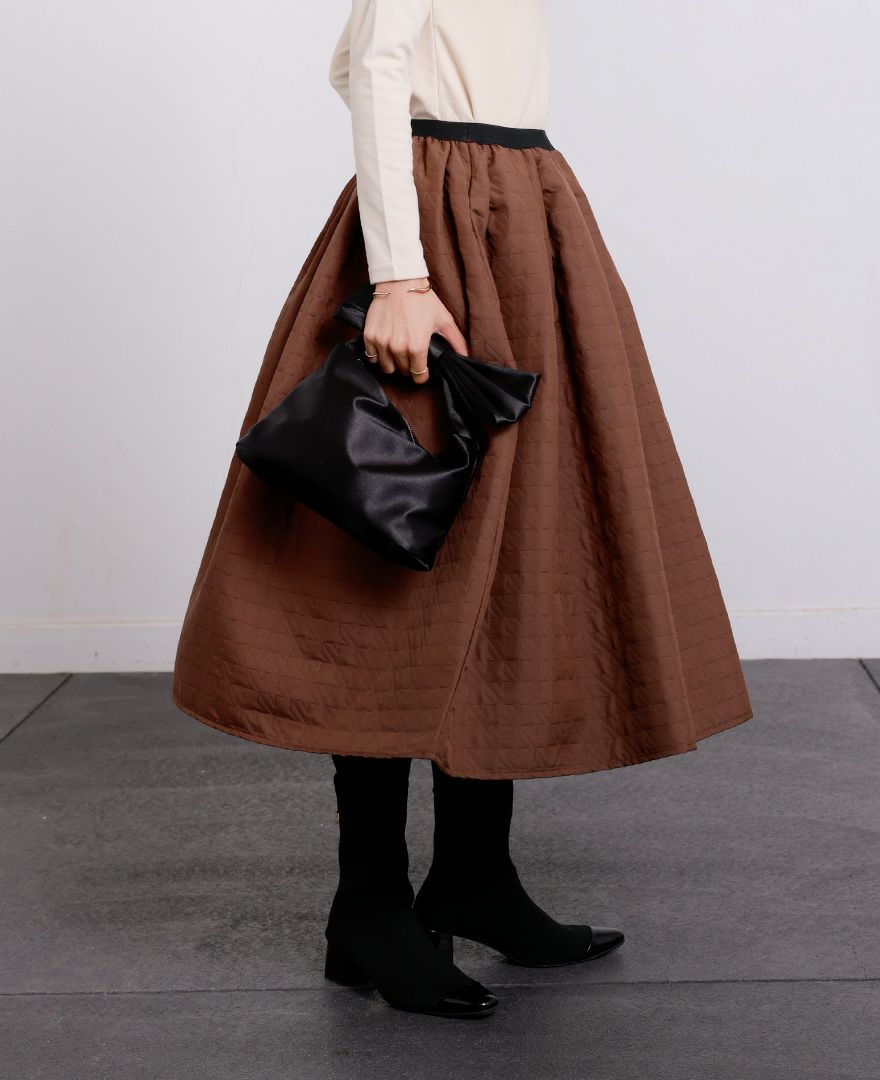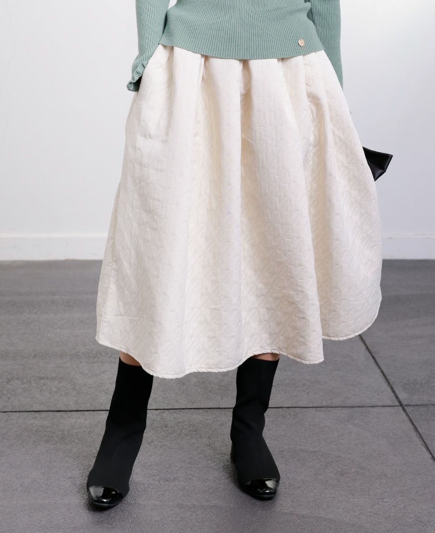 千鳥格子柄を凹凸で再現した、中綿のない一枚仕立てのキルティング調スカート