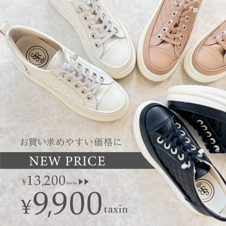 この度、キルティングスニーカーを、よりお買い求めになりやすい価格に値下げをいたします。