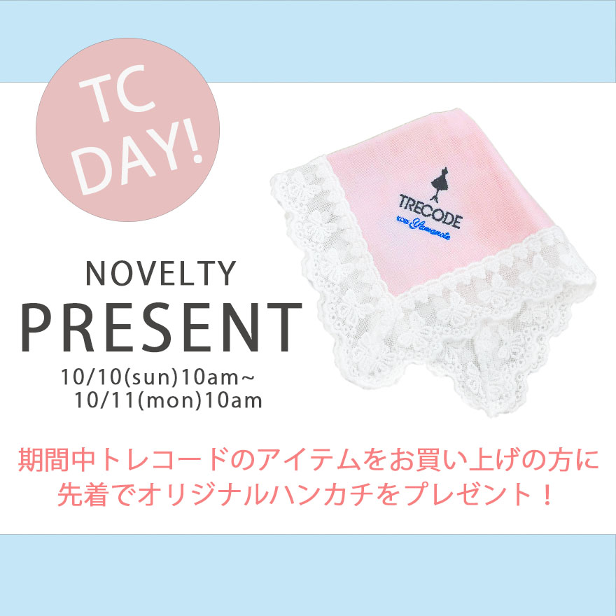 更に!!TRECODEの日に、お買い上げの方に【TRECODEオリジナルハンカチ】をプレゼント!