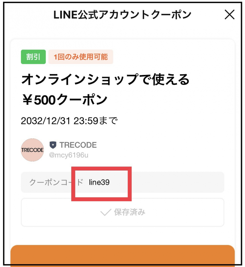 ②表示されたクーポンコードを確認し、コピーしておいてください。