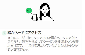 ・「紹介された人」が、紹介ページ以外で公式アカウントを友だち追加した場合は、紹介した人も紹介された人もクーポンを獲得できません。
